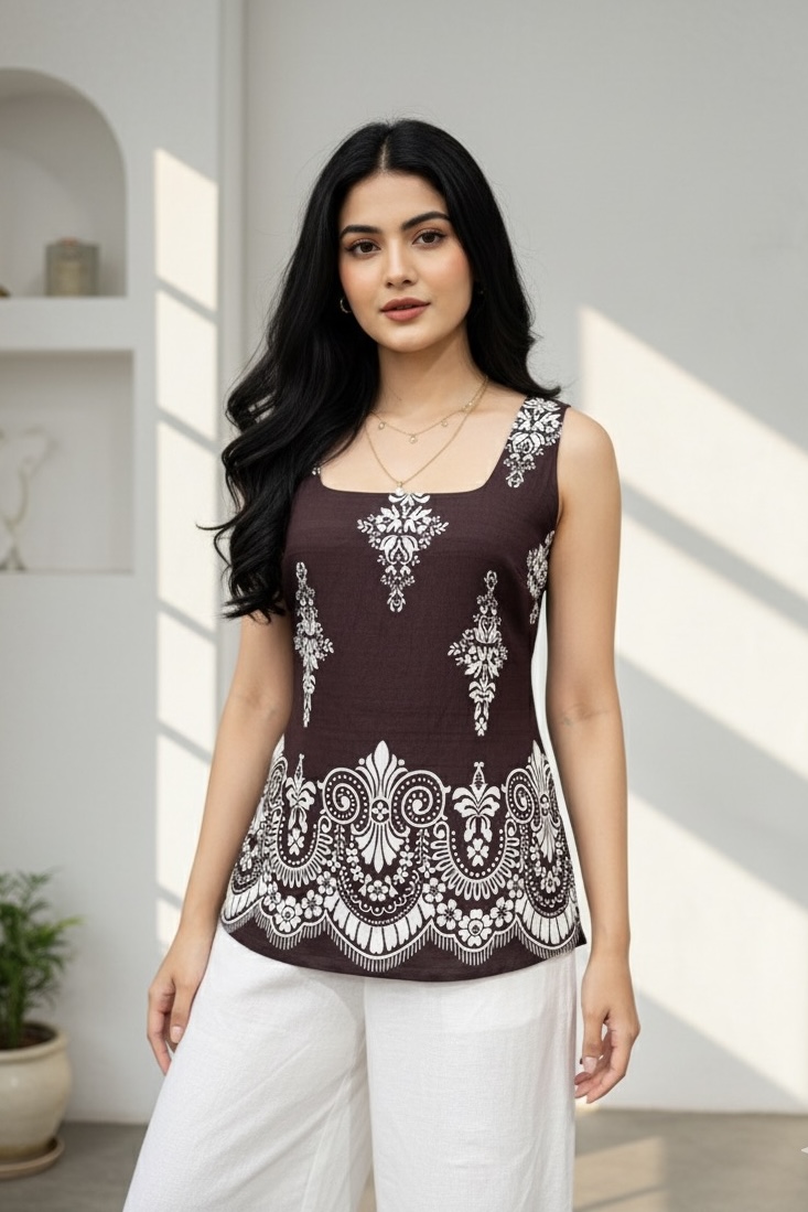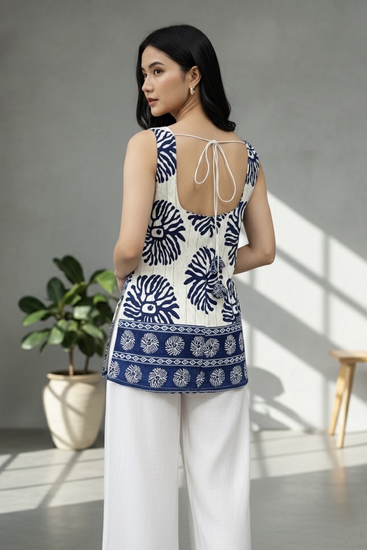 • Color – Blue / Pink / Brown / Red / Balck • Front deep square neck • Backless design with cords • 100% Cotton